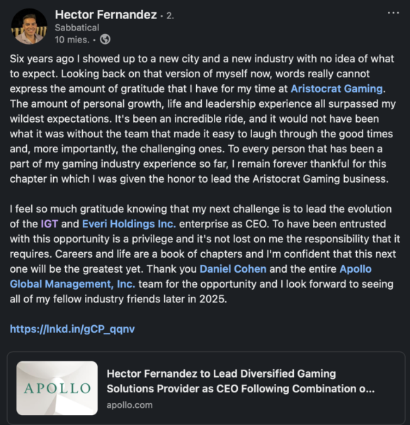 The board selected Fernandez based on his extensive track record in the gaming technology sector. He previously served as CEO for Aristocrat Gaming, one of IGT’s direct global competitors.